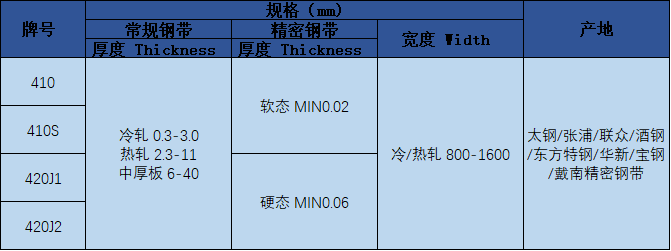 注:1. 精密钢带有软态和硬态,硬态有1/4,1/2,3/4,H,EH,SHE;